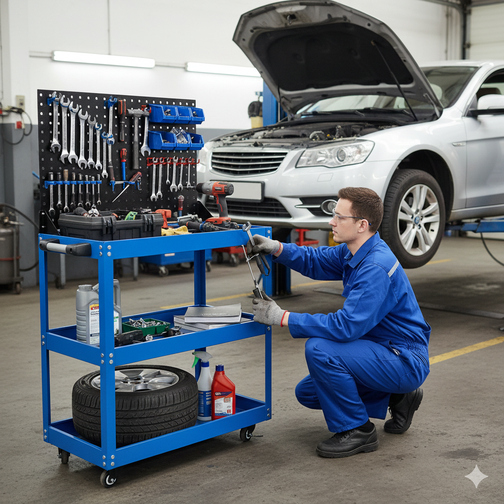 Chariot en acier robuste à 3 niveaux avec outil pour armoire de travail pratique