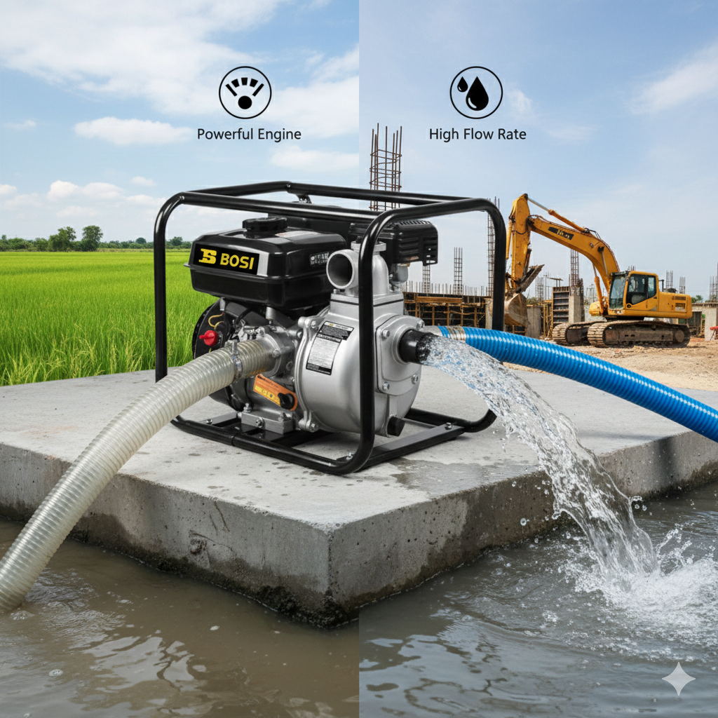 المضخة المائية ذات المحرك البنـزيني بقياس 3 بوصات هي أداة قوية وفعّالة مخصّصة لشفط وضخّ المياه بسرعة عالية. تُستخدم في الريّ، تفريغ الخزانات، تصريف مياه الأمطار والآبار، والأعمال الزراعية والإنشائية. تتميّز بقوة محركها البنـزيني الذي يمنحها قدرة على العمل في الأماكن التي لا تتوفر فيها الكهرباء، مما يجعلها خيارًا عمليًا ومتنقلًا.