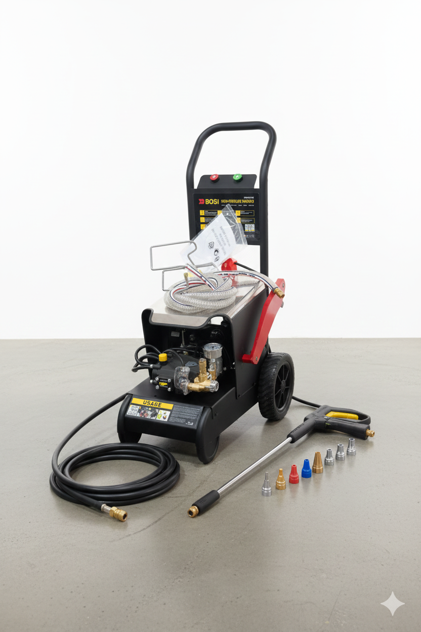 غسالة كهربائية عالية الضغط مصممة لتوفير تنظيف قوي وفعّال للأسطح المختلفة. تعمل بقوة ضغط مرتفعة تساعد على إزالة الأوساخ العنيدة بسهولة، مما يجعلها مثالية لغسل السيارات، الممرات، الواجهات، الأدوات الخارجية، والأرضيات.
