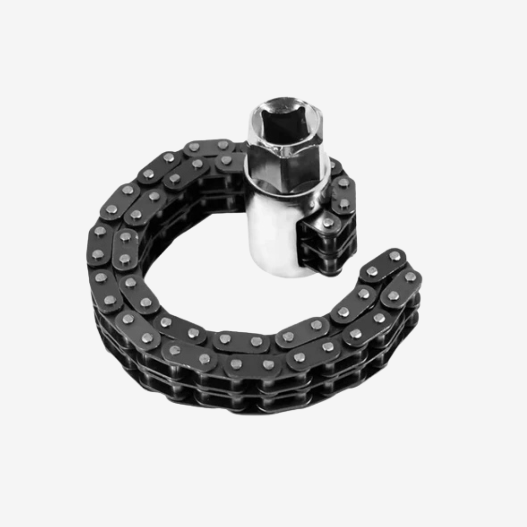 - Chaîne résistante : En acier ou en matériau très résistant, la chaîne assure une prise solide sur le filtre sans risque de glisser ou de l'endommager.