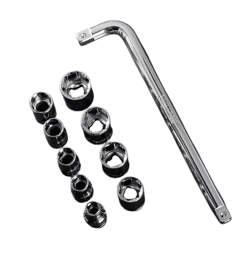 - Configuration des douilles : L’ensemble inclut des douilles de différentes tailles, allant de 10 mm à 32 mm, offrant une grande flexibilité pour diverses applications. Les tailles incluent : 10, 11, 12, 13, 14, 15, 16, 17, 18, 19, 20, 21, 22, 24, 27, 30 et 32 mm.