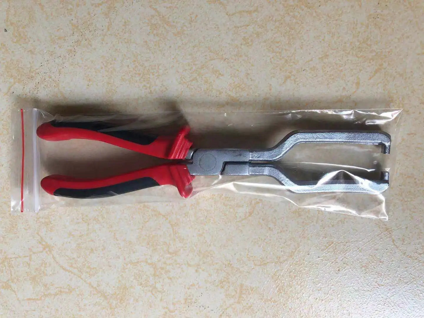 هذه الأداة هي عبارة عن زردية متخصصة مصممة خصيصاً للاستخدام في أنظمة الفرامل أو خراطيم السوائل الهيدروليكية (Hydraulic Systems). تتميز بتصميمها ذي الرؤوس الطويلة والضيقة التي تسمح بإغلاق أو تثبيت خرطوم الفرامل أو الوقود بشكل مؤقت ومنع تسرب السائل عند العمل على خطوط المكابح أو استبدالها، دون إلحاق الضرر بالخرطوم نفسه. الأداة مزودة بمقابض مريحة مانعة للانزلاق باللونين الأحمر والرمادي، بينما الأذرع المعدنية مصقولة لضمان القوة والمتانة ومقاومة التآكل. هذه الأداة أساسية للميكانيكيين لضمان صيانة نظيفة وآمنة لأنظمة الكبح والسوائل الحساسة.