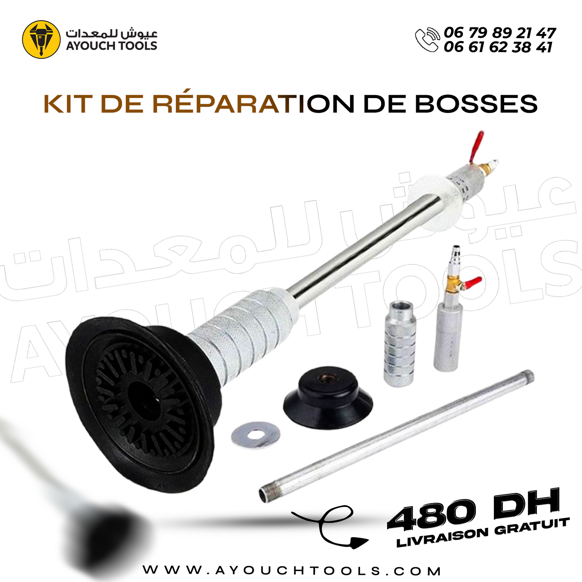 Ce type de kit est souvent utilisé par les professionnels de la réparation automobile pour éliminer les petites bosses sans avoir à repeindre la carrosserie. Il peut être plus rapide et moins coûteux que les méthodes traditionnelles de réparation des bosses. Cependant, il est important de noter que ce kit est généralement efficace pour les bosses peu profondes et larges, et il peut ne pas convenir à tous les types de bosses ou de dommages de carrosserie.