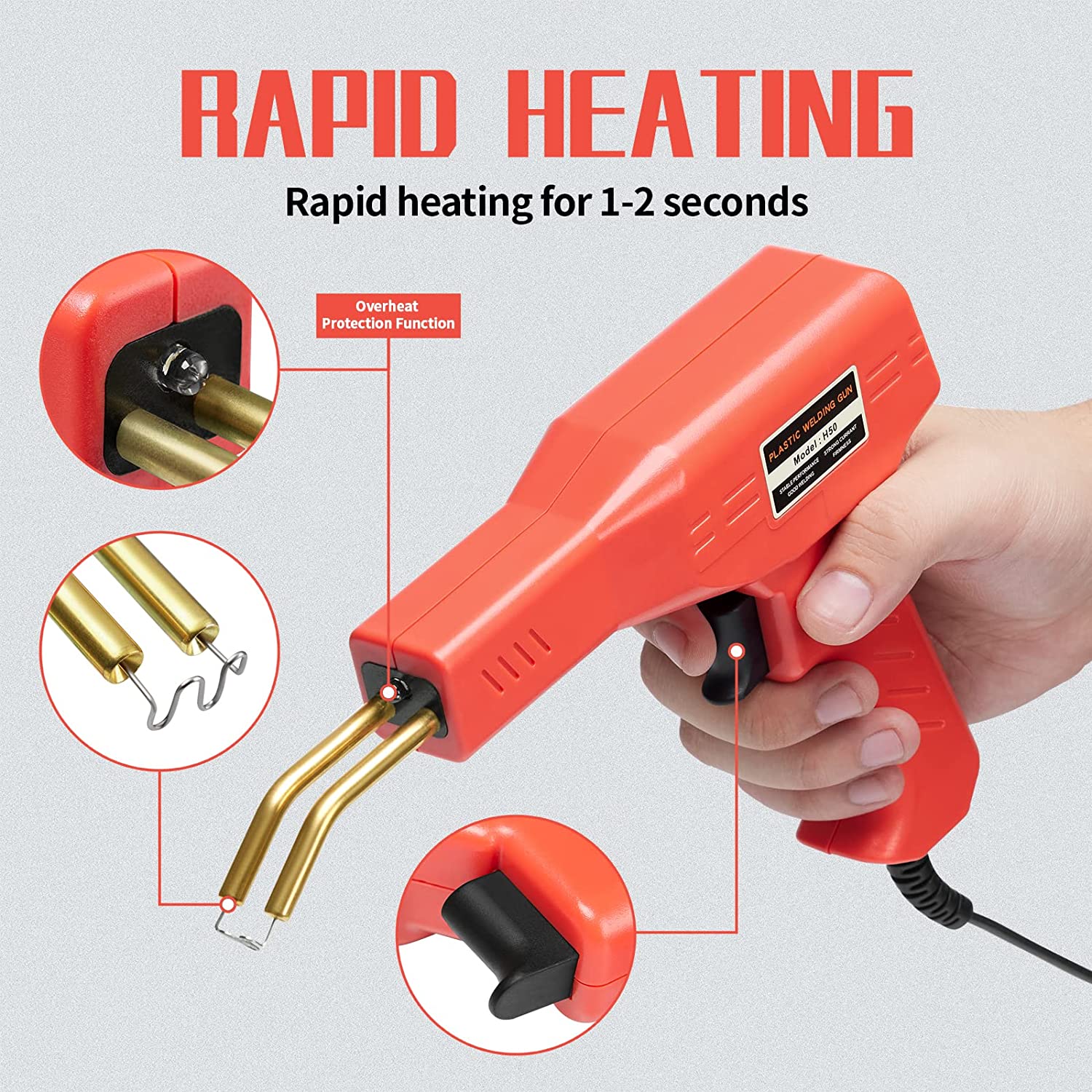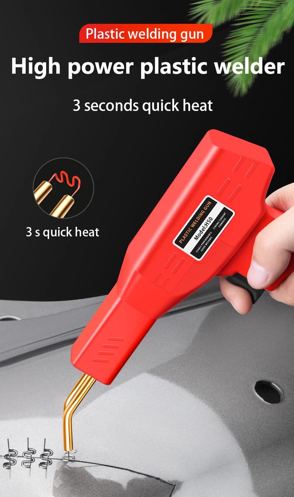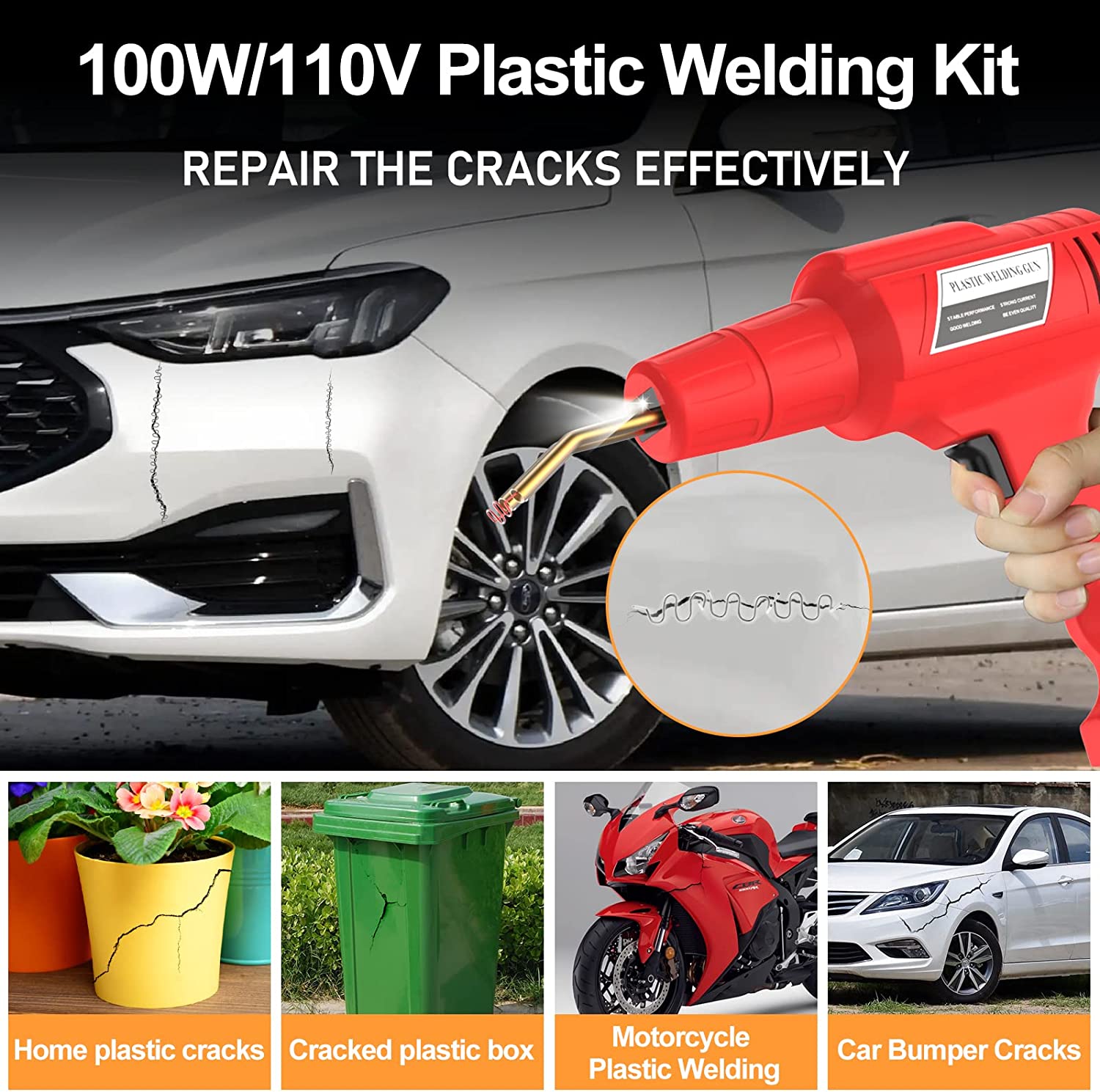 - Kit complet : 1 pistolet de soudage, 1 pince, 1 couteau, 1 boîte de transport, 200 pinces